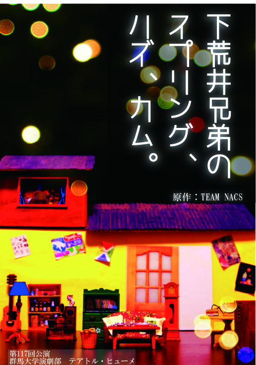 群馬大学演劇部テアトルヒューメ第117回公演「下荒井兄弟のスプリング、ハズ、カム」にて、話の中心となる五人兄弟の三男を務めさせていただきますみつおです。